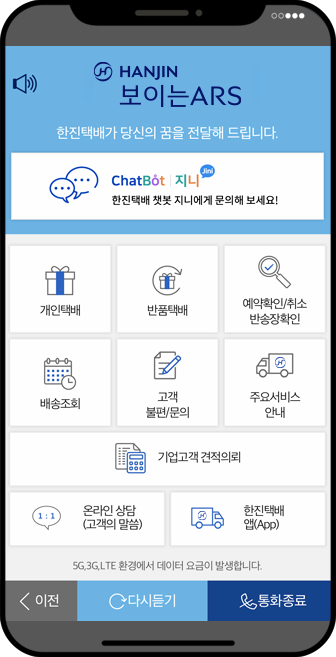 스마트폰에서 음성 ARS 연결을 원하실 경우, 보이는 ARS 첫 화면에서 음성 ARS를 선택해주세요.